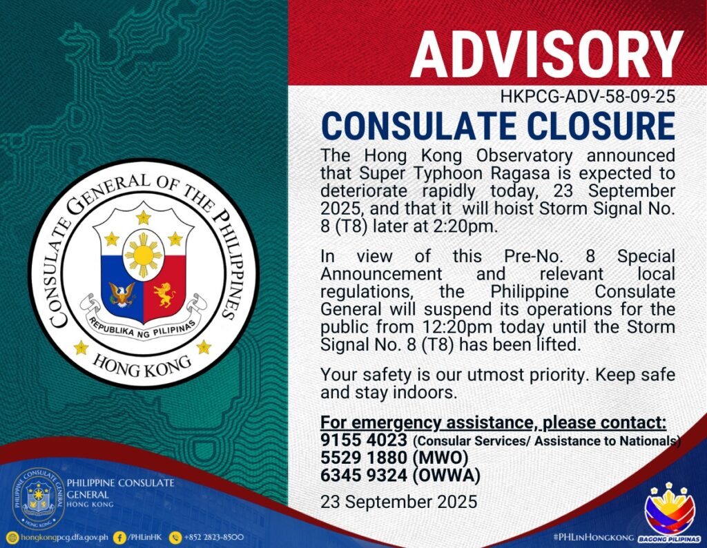 𝐏𝐔𝐁𝐋𝐈𝐂 𝐀𝐃𝐕𝐈𝐒𝐎𝐑𝐘  𝐒𝐮𝐬𝐩𝐞𝐧𝐬𝐢𝐨𝐧 𝐧𝐠 𝐏𝐀𝐎𝐒 𝐃𝐚𝐡𝐢𝐥 𝐬𝐚 𝐩𝐚𝐩𝐚𝐫𝐚𝐭𝐢𝐧𝐠 𝐧𝐚 𝐬𝐮𝐩𝐞𝐫 𝐭𝐲𝐩𝐡𝐨𝐨𝐧  Bilang tugon sa babala ng Hong Kong Observatory ukol sa paparating na Super Typhoon Ragasa, 𝗮𝗻𝗴 𝗹𝗮𝗵𝗮𝘁 𝗻𝗴 𝗣𝗼𝘀𝘁 𝗔𝗿𝗿𝗶𝘃𝗮𝗹 𝗢𝗿𝗶𝗲𝗻𝘁𝗮𝘁𝗶𝗼𝗻 𝗦𝗲𝗺𝗶𝗻𝗮𝗿 (𝗣𝗔𝗢𝗦) 𝗻𝗮 𝗻𝗮𝗸𝗮𝘁𝗮𝗸𝗱𝗮𝗻𝗴 𝗺𝗮𝗴𝘀𝗶𝗺𝘂𝗹𝗮 𝘀𝗮 𝗦𝗲𝗽𝘁𝗲𝗺𝗯𝗲𝗿 𝟮𝟯, 𝟮𝟬𝟮𝟱 𝗮𝘆 𝗽𝗮𝗻𝘀𝗮𝗺𝗮𝗻𝘁𝗮𝗹𝗮𝗻𝗴 𝘀𝗶𝗻𝘂𝘀𝗽𝗶𝗻𝗱𝗲 𝗵𝗮𝗻𝗴𝗴𝗮𝗻𝗴 𝘀𝗮 𝘀𝘂𝘀𝘂𝗻𝗼𝗱 𝗻𝗮 𝗮𝗯𝗶𝘀𝗼. Ang kaligtasan ng ating mga kababayan